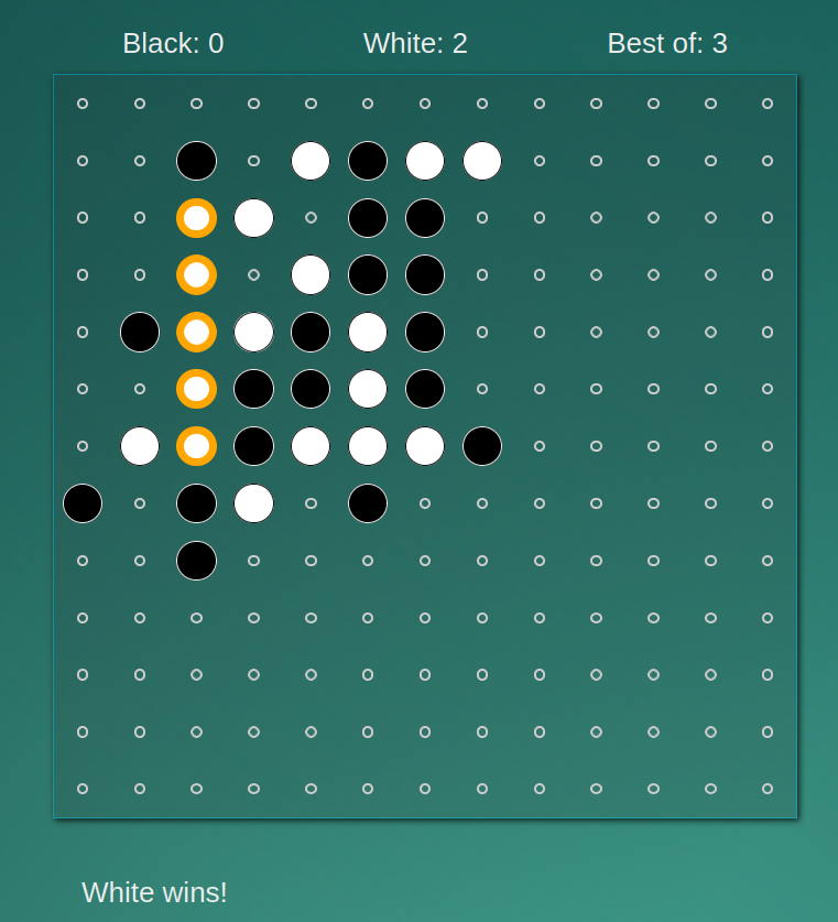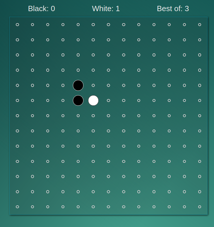 He is 10 and has been learning to code, scratch at school and camp, javascript/html/css with me for a few years. We decided on 五子棋 (Gobang) – five in a row, played on a Go board, as a simple project that could result in a playable game. He had built Towers of Hannoi and Naughts and Crosses (Tic Tac Toe) in javascript before, so this seemed like a good level, and we started with a playable ‘local’ version as step one.